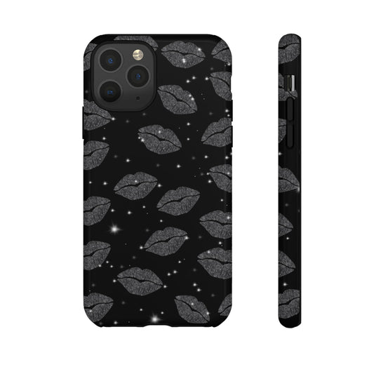 Cover per Iphone – Black Glitter Lip Print Protective Tough Case